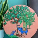 A portrait of a young woman in a traditional outfit, exuding quiet elegance and contemplation. Her expressive eyes and poised stance suggest a story untold, while the rich fabric and earthy tones enhance the painting’s depth and warmth.